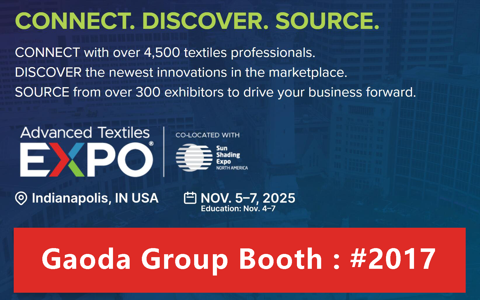 가오다그룹은 11월 5일부터 7일까지 인디애나주 인디애나폴리스에서 열리는 AT Expo 2025 전시회에 참가한다. 고성능 산업용 직물의 세계 선두 제조업체인 Gaoda Group은 다양한 PVC 나이프 코팅 소재, 메쉬 소재, 고성능 경편 산업용 직물 및 환경 친화적인 재활용 가죽 제품을 선보일 예정입니다.